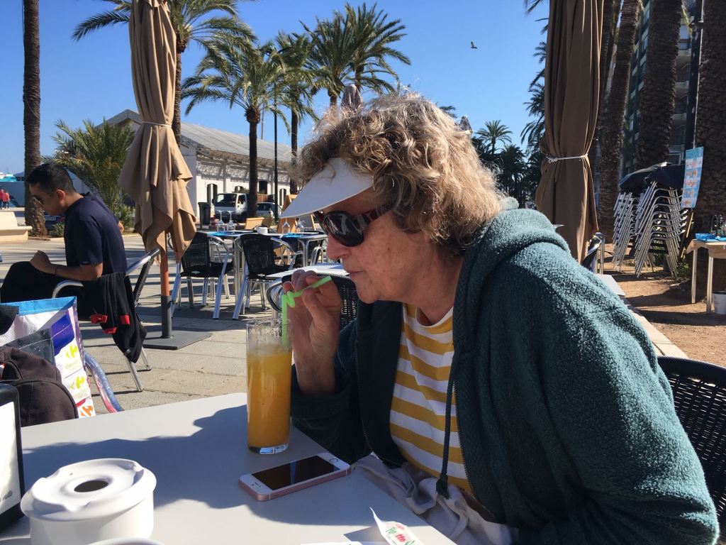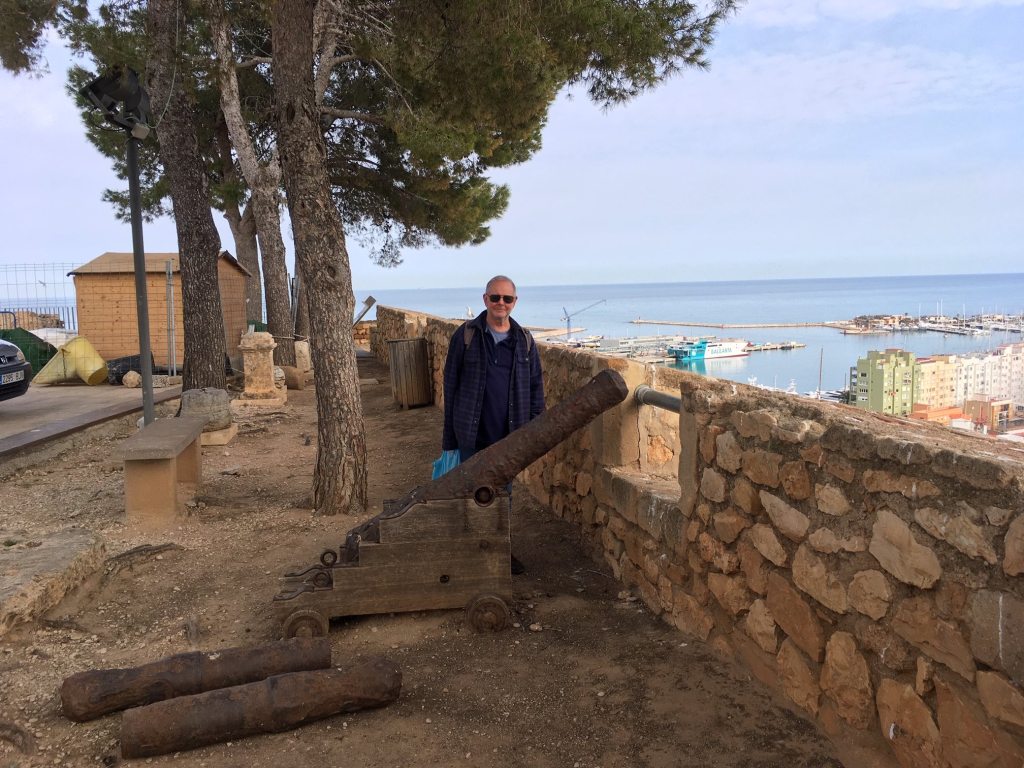 Apart from fun and idling we had chores to fulfil. I had left home with a chipped, but not painful, back molar. Then I knocked a piece off a front tooth and adopted a bit of a witch-like look with an unpleasant fang. The woman on the campsite reception directed us to a dentist in town who spoke english, and I got an appointment a couple of days later. (Those were the days if we did but know it!) I ended up with two trips as the repair to the molar did not want to stay put. Excellent service and pretty cheap too – dentistry is not covered on the insurance. Being in town early meant we could explore a bit and have lunch. Denia grows on us year by year – magnificent castle, beautiful sandy beach, many good value eateries and just generally everything you could hope for in a Mediterranean port.