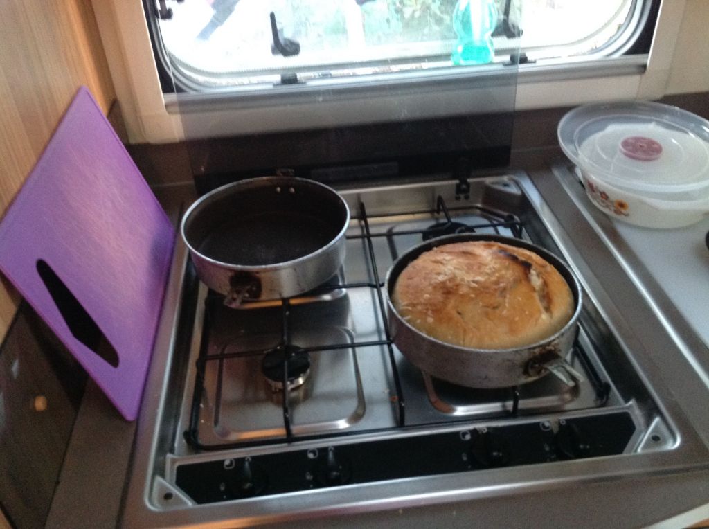 The campsite has many over-wintering retirees and a good social life had developed. A communal bring-your-own-furniture paella lunch was arranged and with the help, and starter, from another camper I became a very early adopter of sourdough bread making. First time I had used the oven as an oven rather than a cupboard actually and I melted the plastic bags stored in the grill above. Clearly the insulation between components parts is not great.